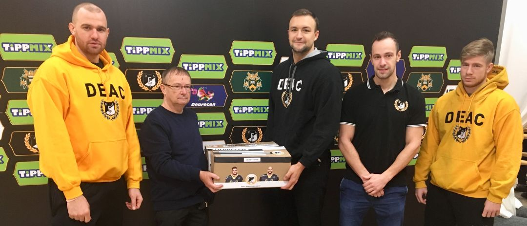 A DEAC jégkorongozóinak csokigyűjtő doboza az alapítvány felhívásának megfelelően egyedileg, „házon belül” készült, rajta a teljes csapattal és a srácok beteg gyerekeknek küldött üzenetével: „Veled vagyok!”.